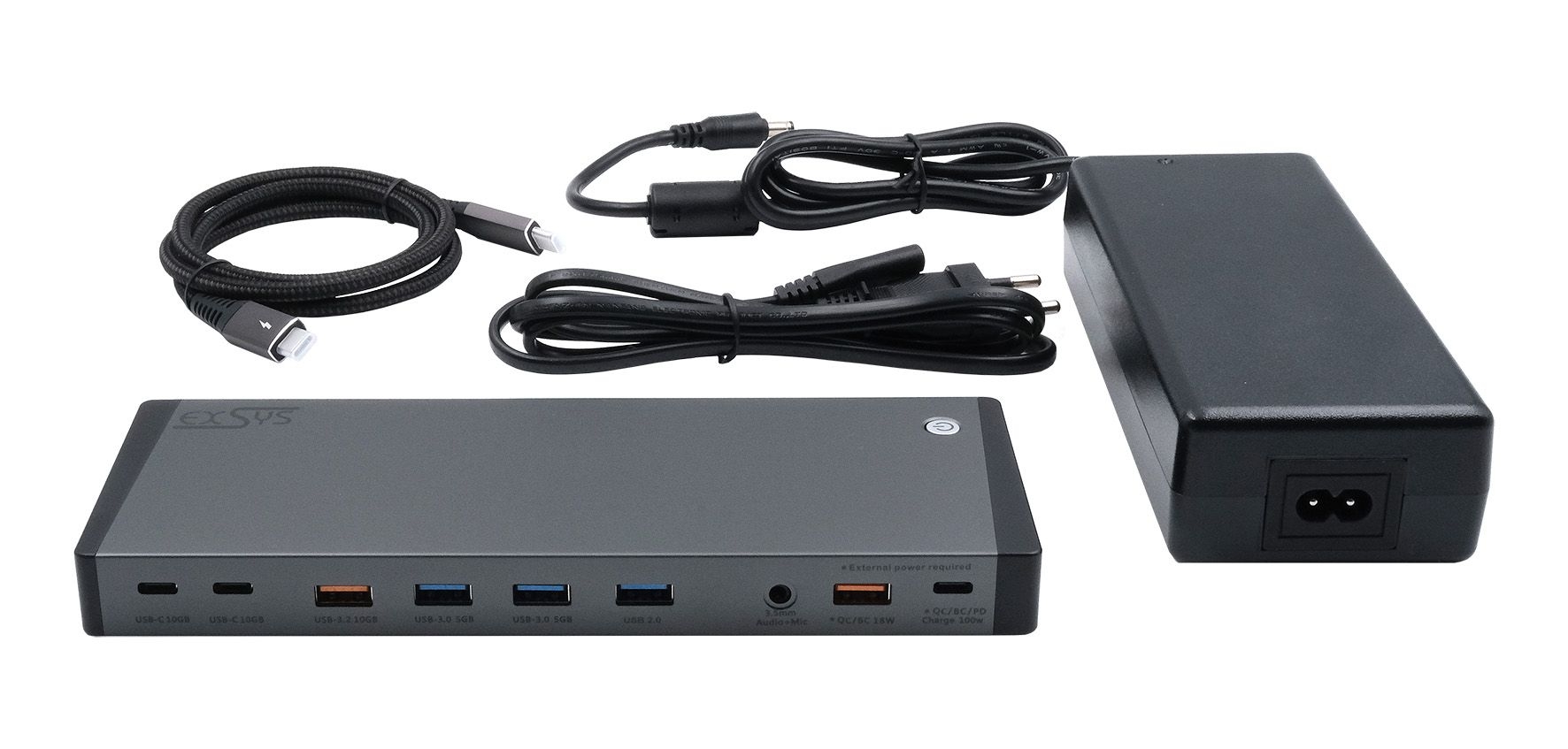 Die EX-1227HM ist eine USB-C / Thunderbolt Docking Station, die Ihr Notebook/MacBook in eine vollwertige Workstation verwandelt. Die EX-1227HM ist mit einem USB-A 2.0 Port, zwei USB-A 3.2 Gen 1 Ports, einem USB-A 3.2 Gen 2x1 und zwei USB-C 3.2 Gen 2x1 Ports ausgestattet. Darüber hinaus verfügt das EX-1227HM über zwei DisplayPorts und zwei HDMI-Anschlüsse mit jeweils 4K@60Hz zum Anschluss von zwei Monitoren, einen Netzwerkanschluss zur vollständigen Einbindung in ein Netzwerk und eine 3,5 mm Klinkenbuchse für Kopfhörer/Mikrofon. Darüber hinaus unterstützt das EX-1227HM zwei USB-C PD Ports mit bis zu 100W, sodass Sie Ihr Notebook/MacBook und andere Geräte problemlos mit Strom versorgen können. Zusätzlich verfügt die EX-1227HMS über einen USB-A Quick Charge 3.0 Port mit bis zu 18W, mit dem Sie Tablets und Smartphones in Höchstgeschwindigkeit aufladen können.