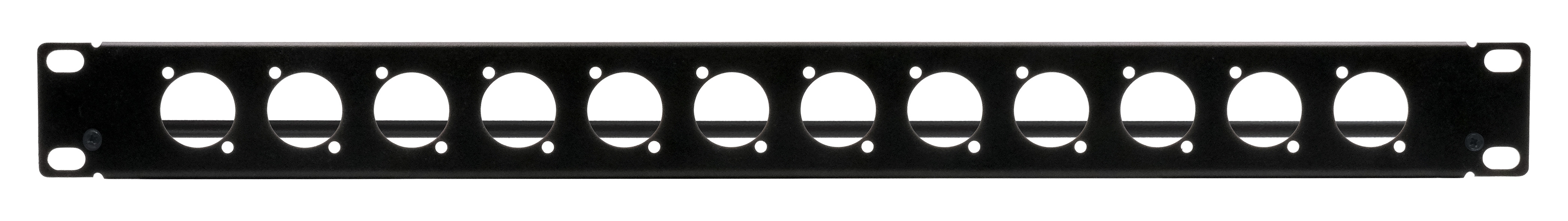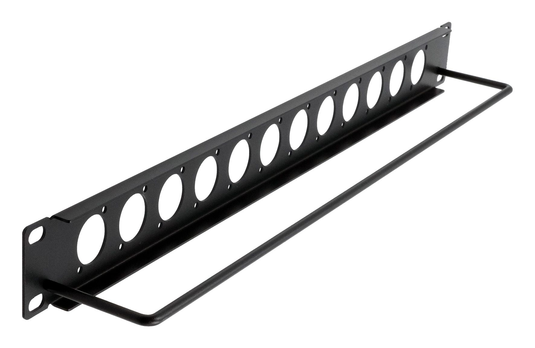 19" Rackblende 1HE, 12x D-Typ (XLR), mit Kabelfangbügel