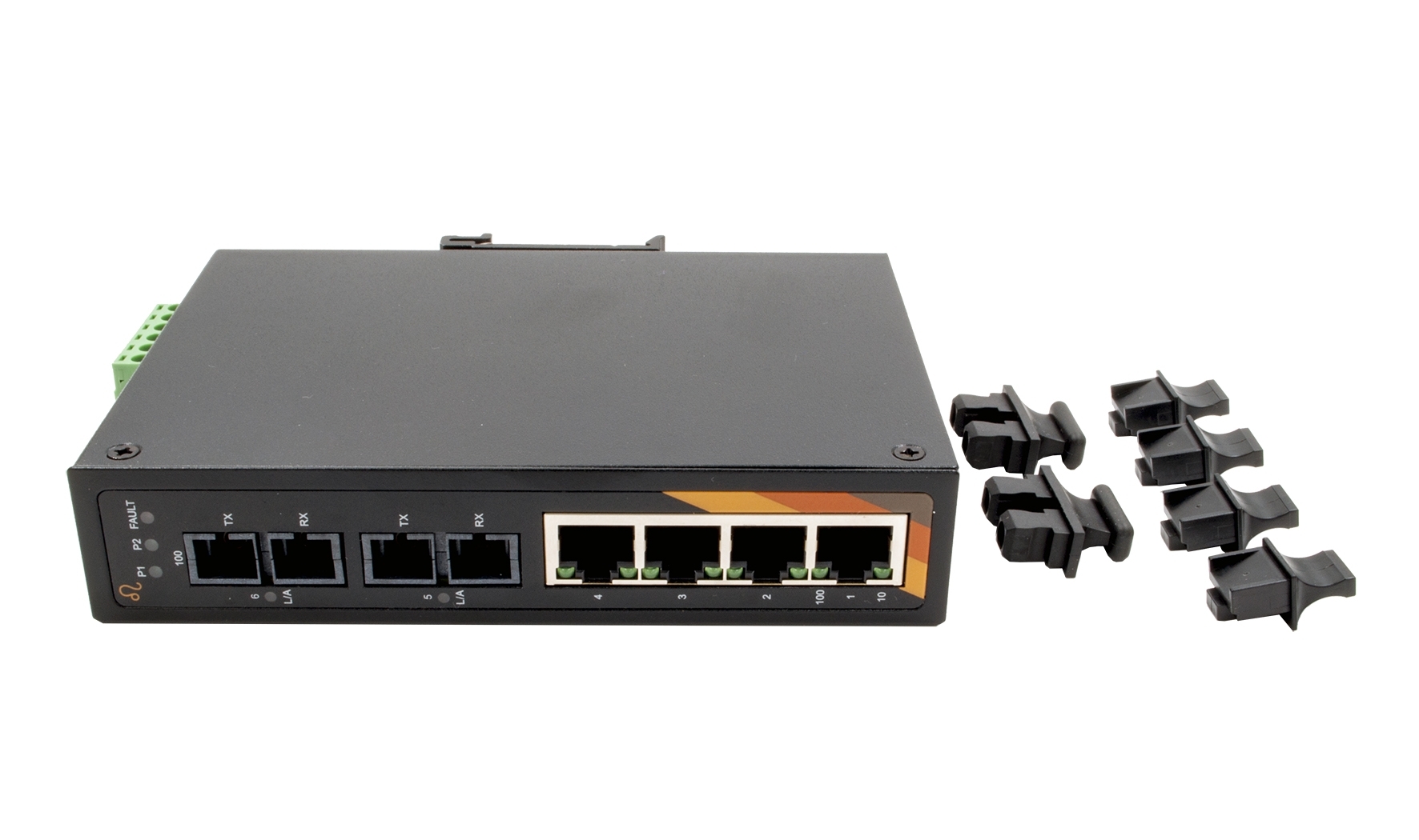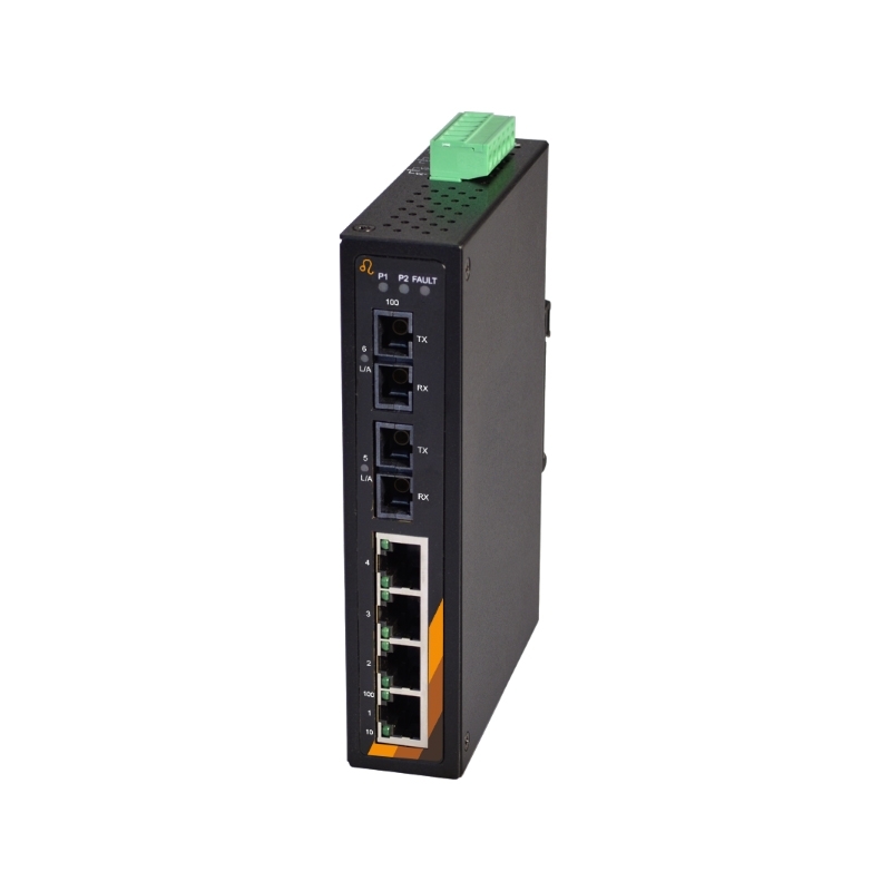 Der EX-6203 ist ein industrieller 6-Port Ethernet Unmanaged Switch im Metallgehäuse. Er verfügt über zwei fiberoptische Anschlüsse und vier Fast Ethernet Ports. Dank der redundanten Stromversorgung von 2x 12 V - 48 VDC über einen Terminal Block bietet er eine erhöhte Betriebssicherheit.