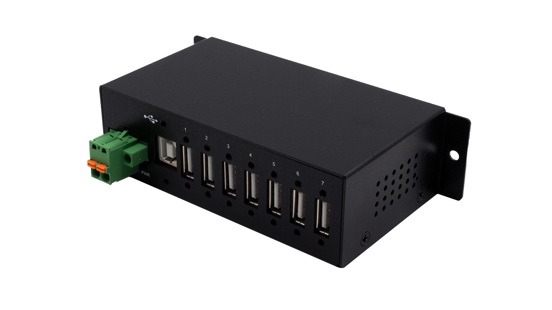 - USB 2.0 HUB mit sieben Downstream USB 2.0 Ports, verschraubbar
