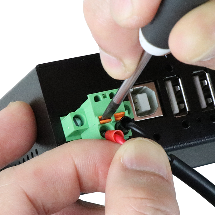- Stromversorgung +7V bis +24V DC über Terminal Block steckbar