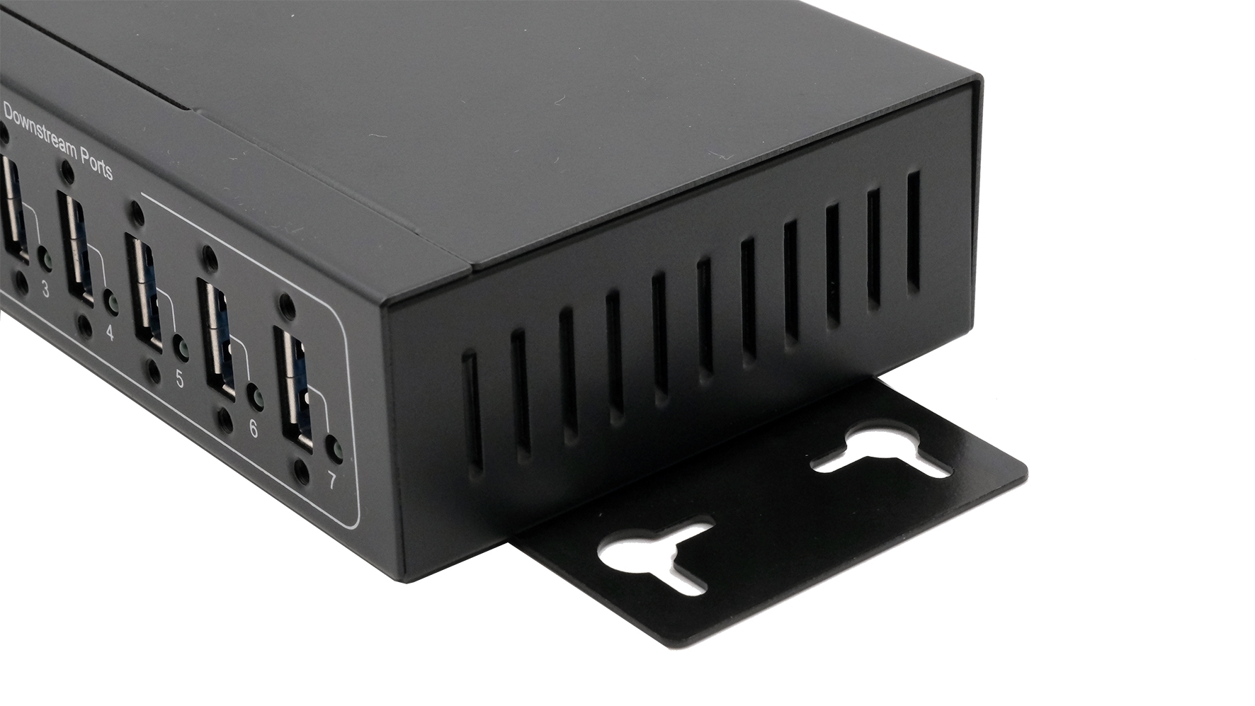 Der robuste, industrietaugliche EX-11217HMVS USB-Hub mit sieben verschraubbaren USB 2.0 Ausgängen ist für Consumer und Industrieanwendungen geeignet. Er kann an die Wand oder auch auf eine Trägerschiene installiert werden und wird an Computer, Notebook oder Server mit dem mitgelieferten USB 2.0 Kabel angeschlossen. Es wird die Hi-Speed USB 2.0 Datenübertragungsrate von bis zu 480 Mbit/s unterstützt und ist abwärtskompatibel bis USB 1.1.