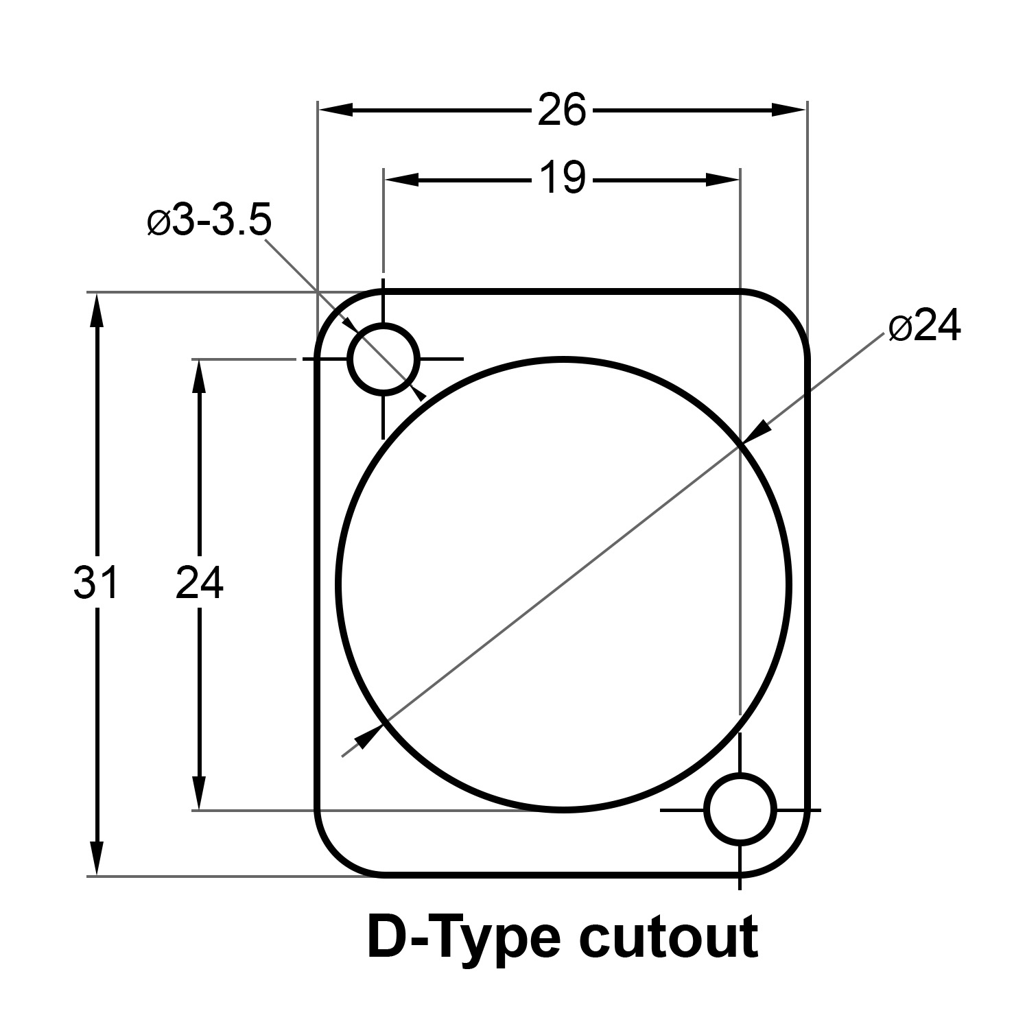 Der D-Typ Adapter kann in ein Panel oder Gehäuse mit D-Typ Aussparungen (XLR-Buchsen) eingebaut werden. Er ist ideal geeignet um z.B. digitales Equipment in professionelle Audio-Systeme einzubinden.