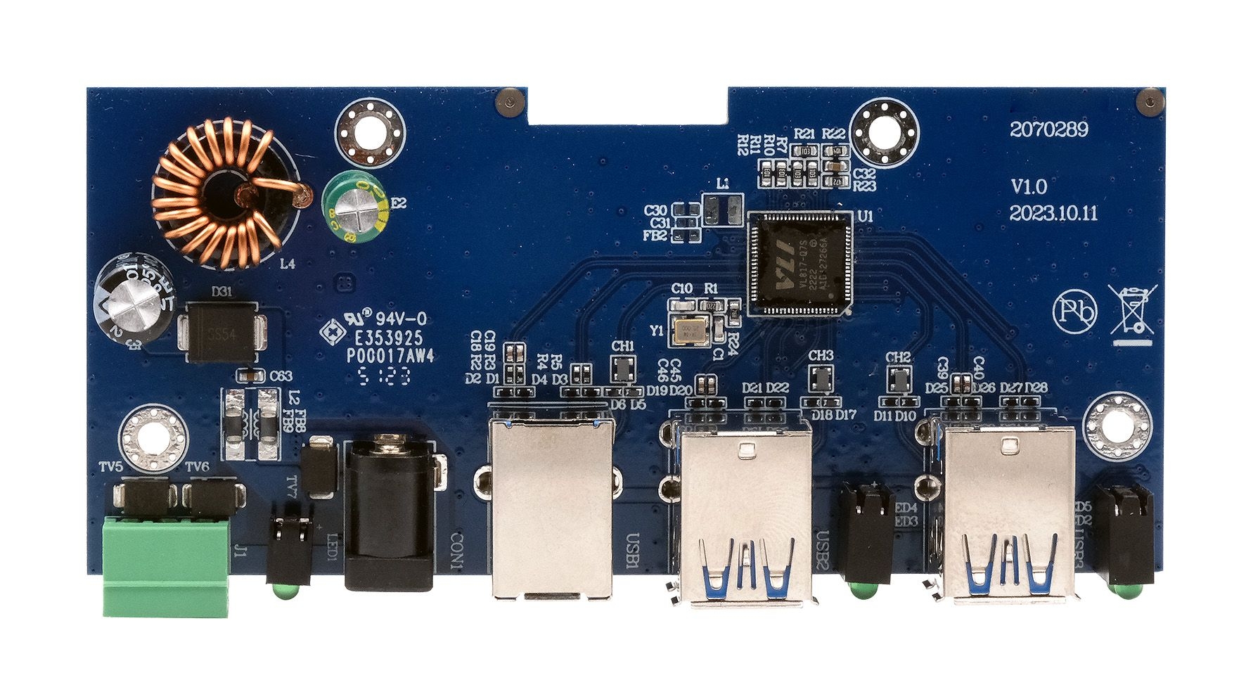 The USB 3.2 Gen 1 Hub Board EX-11244HMS-PL is a fully functional industrial USB 3.2 hub with four downstream ports for integration into custom devices, assemblies or enclosures. It is ideal for embedded systems, kiosks, industrial automation and other specialised applications requiring multiple USB ports.