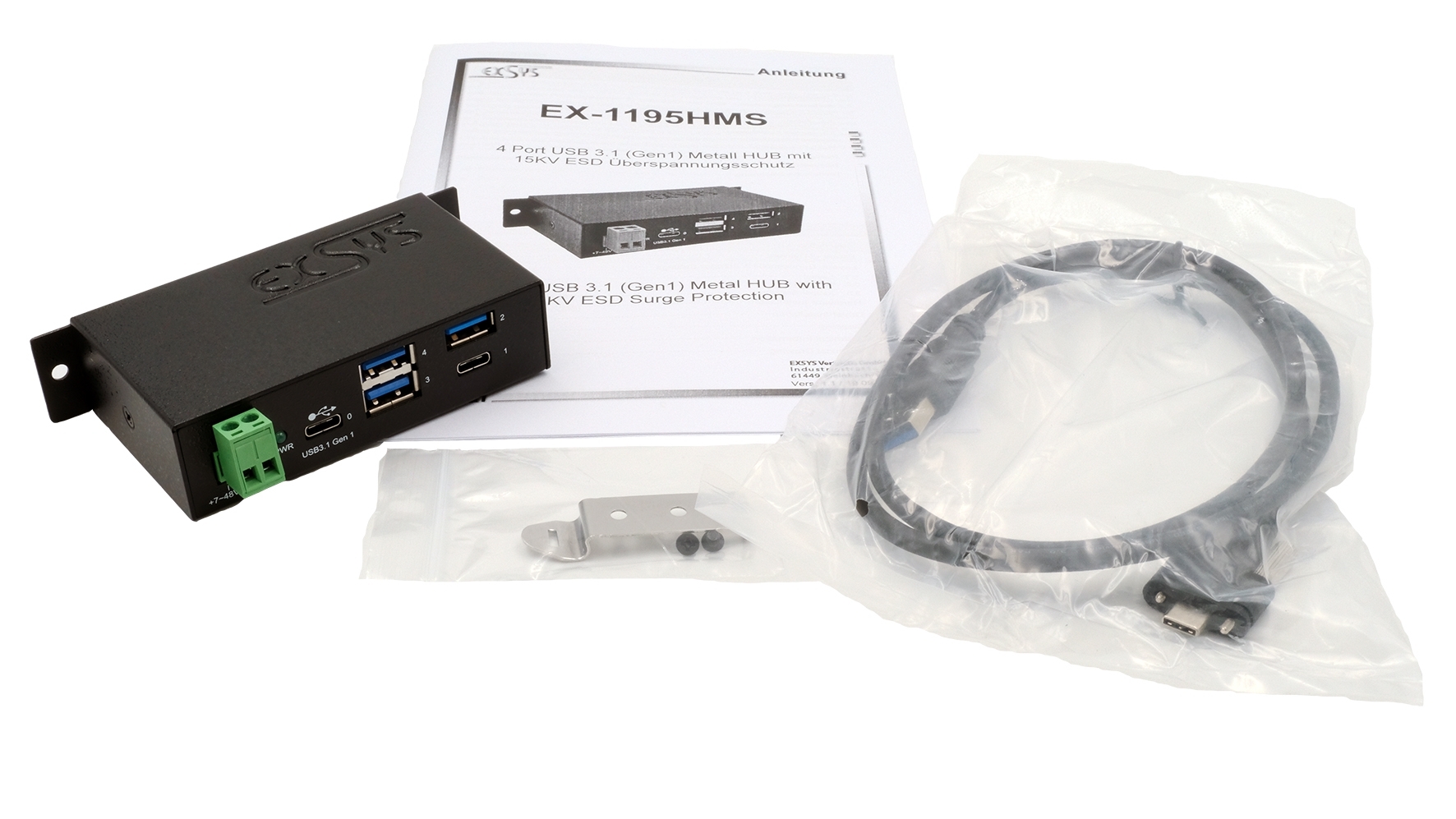 EX-1195HMS, USB A-to-C 3.2 Gen 1 cable, DIN-Rail Kit, Manual