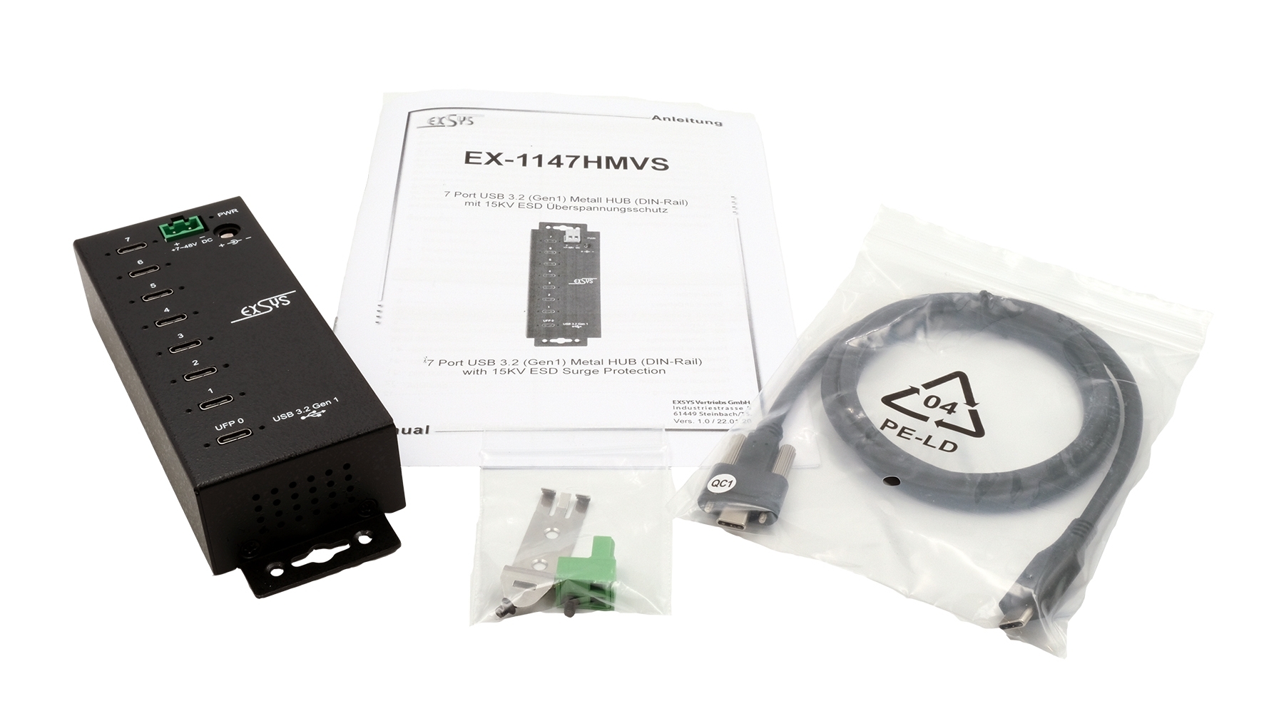 EX-1147HMVS, USB 3.2 Gen 1 Cable, DIN-Rail Kit, Manual