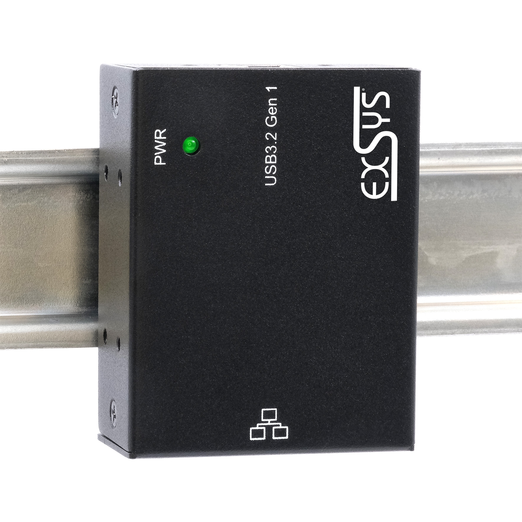 The EX-13021HMV allows you to connect a notebook, desktop PC or server in a 19-inch rack to a 10/100/1000 Mbit/s network via the USB-B port (USB 3.2 Gen 1). It can also be installed in addition to an existing network card. Installation is very easy and does not require opening the systems. Due to its compact and robust design, the EX-13021HMV is ideal for use in harsh environments. Additionally, the USB 3.2 Gen 1 cable can be screwed to the EX-13021HMV. The delivery package includes two wall mounting brackets and a DIN-Rail kit for installation in a 19" rack.
