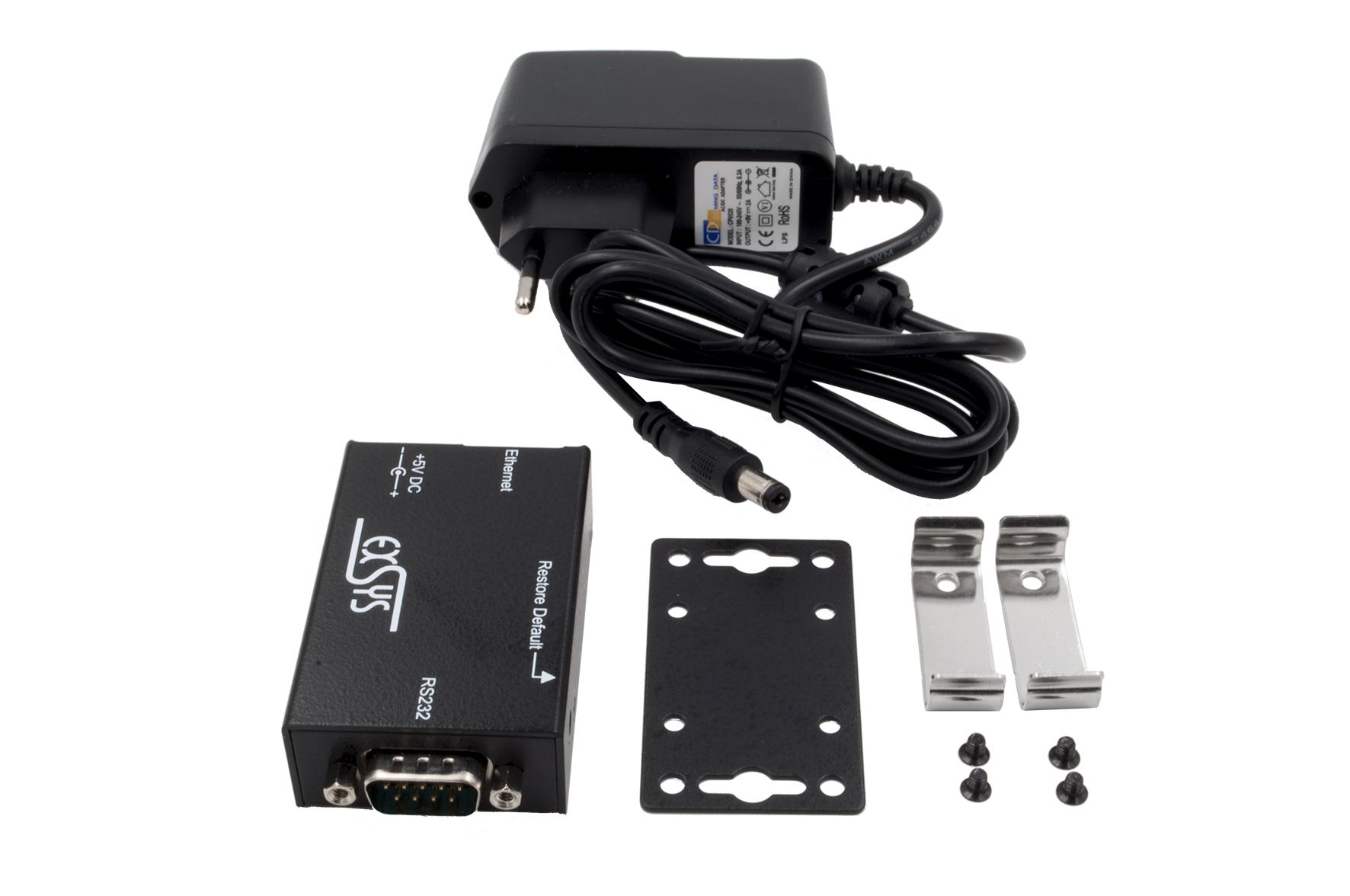 Lieferumfang: EX-6030-5V, Netzteil 5V/2A, Wandmontage Kit, Din-Rail Kit, Treiber CD, Handbuch