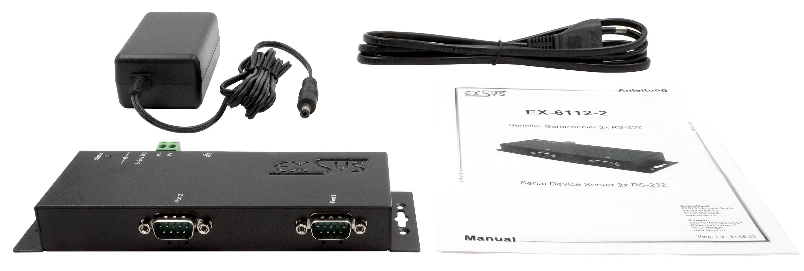 Ethernet zu 2x RS-232 port, inkl. 12V/3A Netzteil, nur für Windows