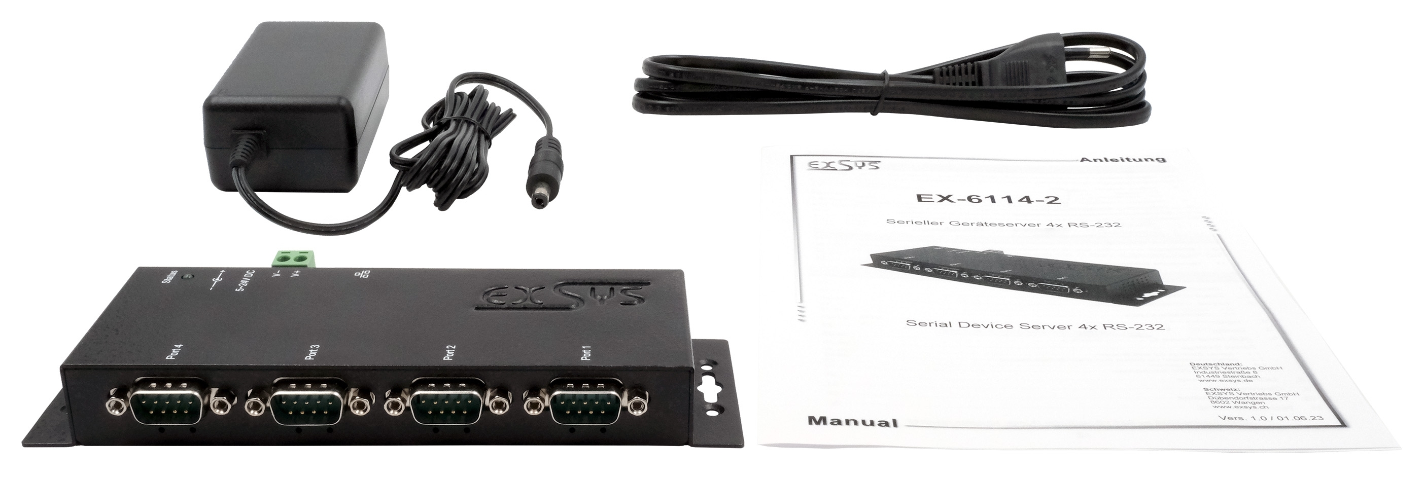 Ethernet zu 4x RS-232 port, inkl. 12V/3A Netzteil
