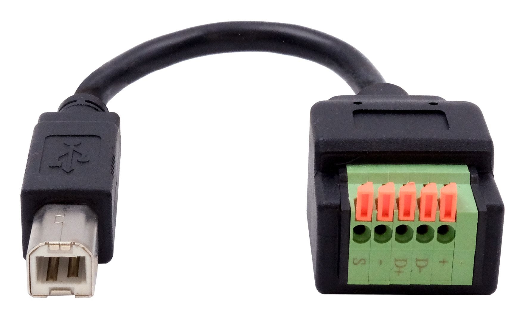 Kabel-Adapter USB-B Stecker zu 5-pin Terminal Block mit Drucktaster, USB 2.0, 15 cm