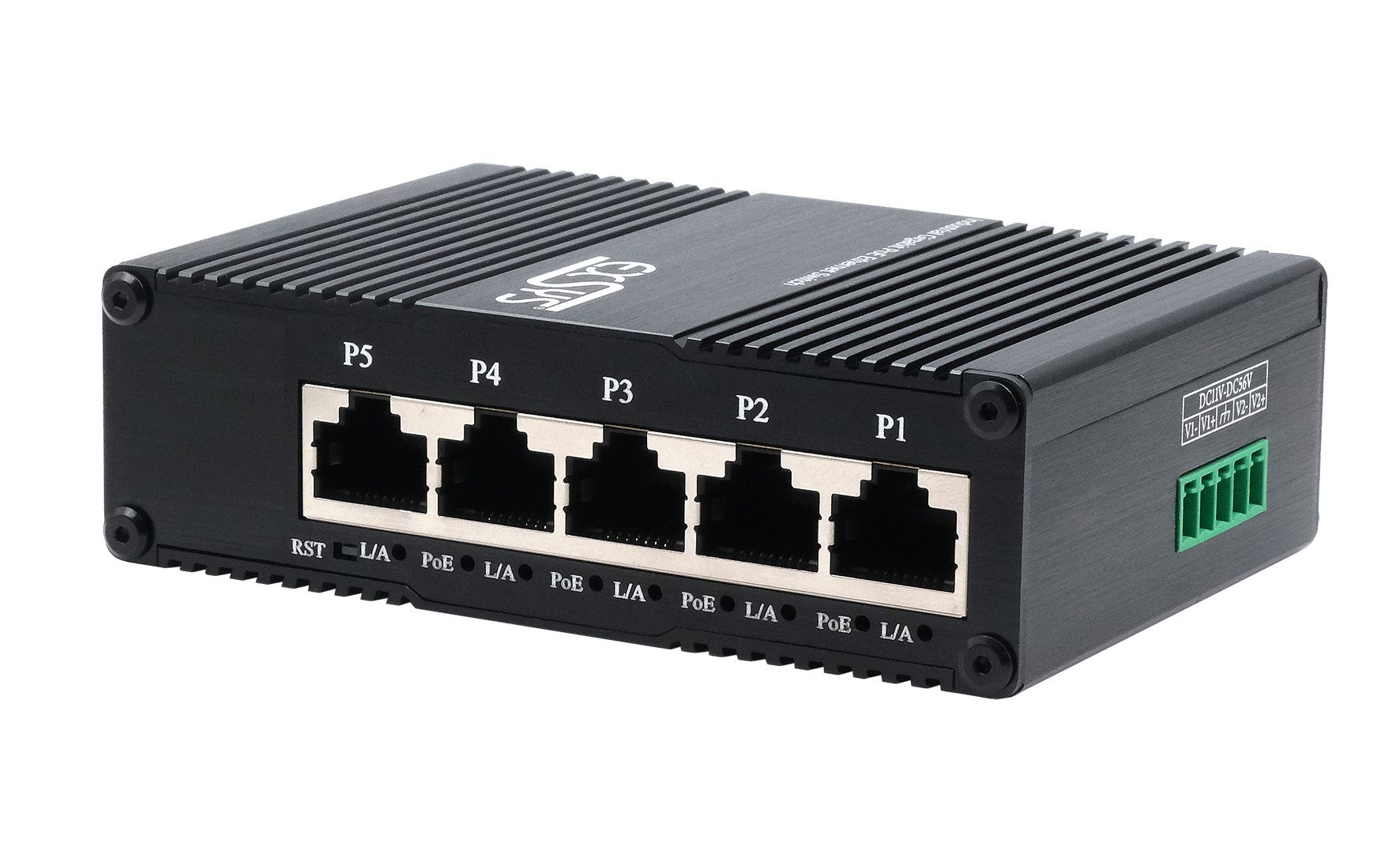 Mini 5-Port Industrial Gigabit PoE+ Switch, Web-Managed