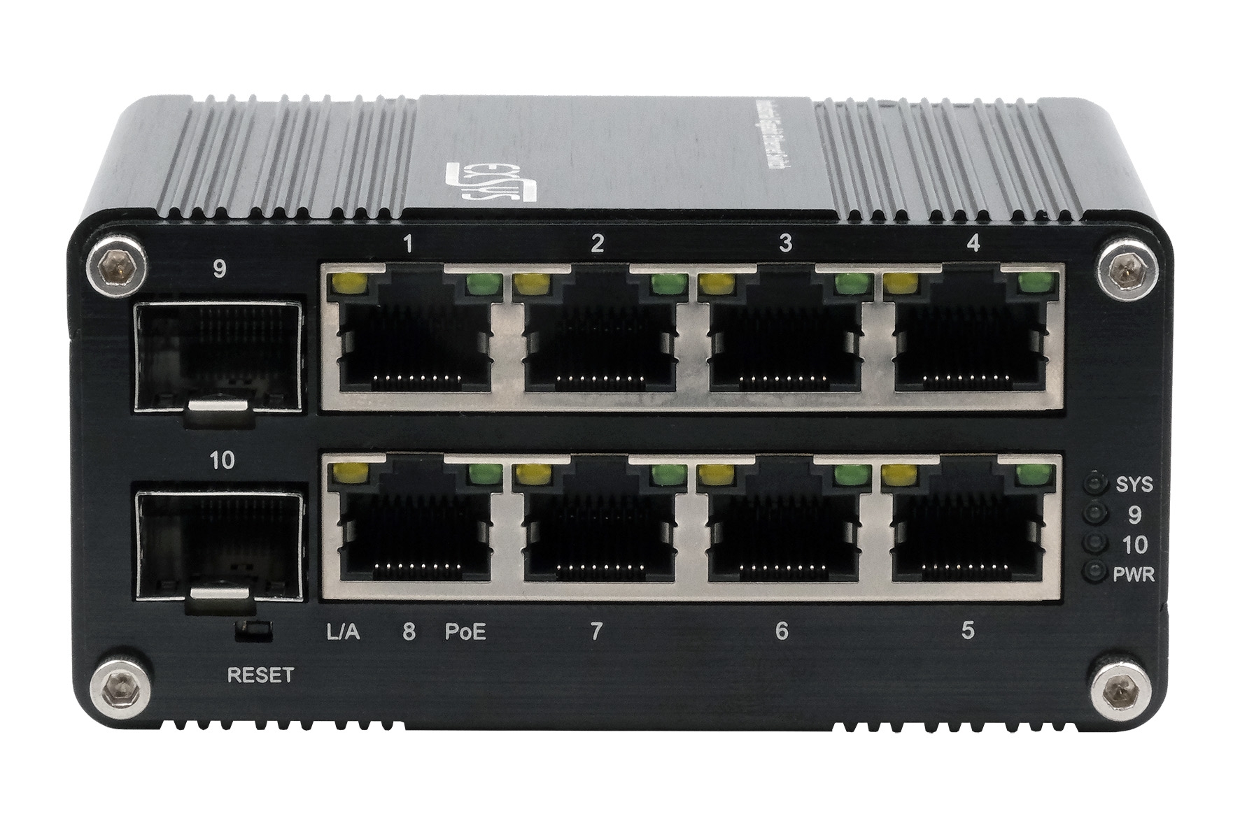 Mini 8+2-Port Industrial Gigabit SFP PoE+ Switch, Web-Managed