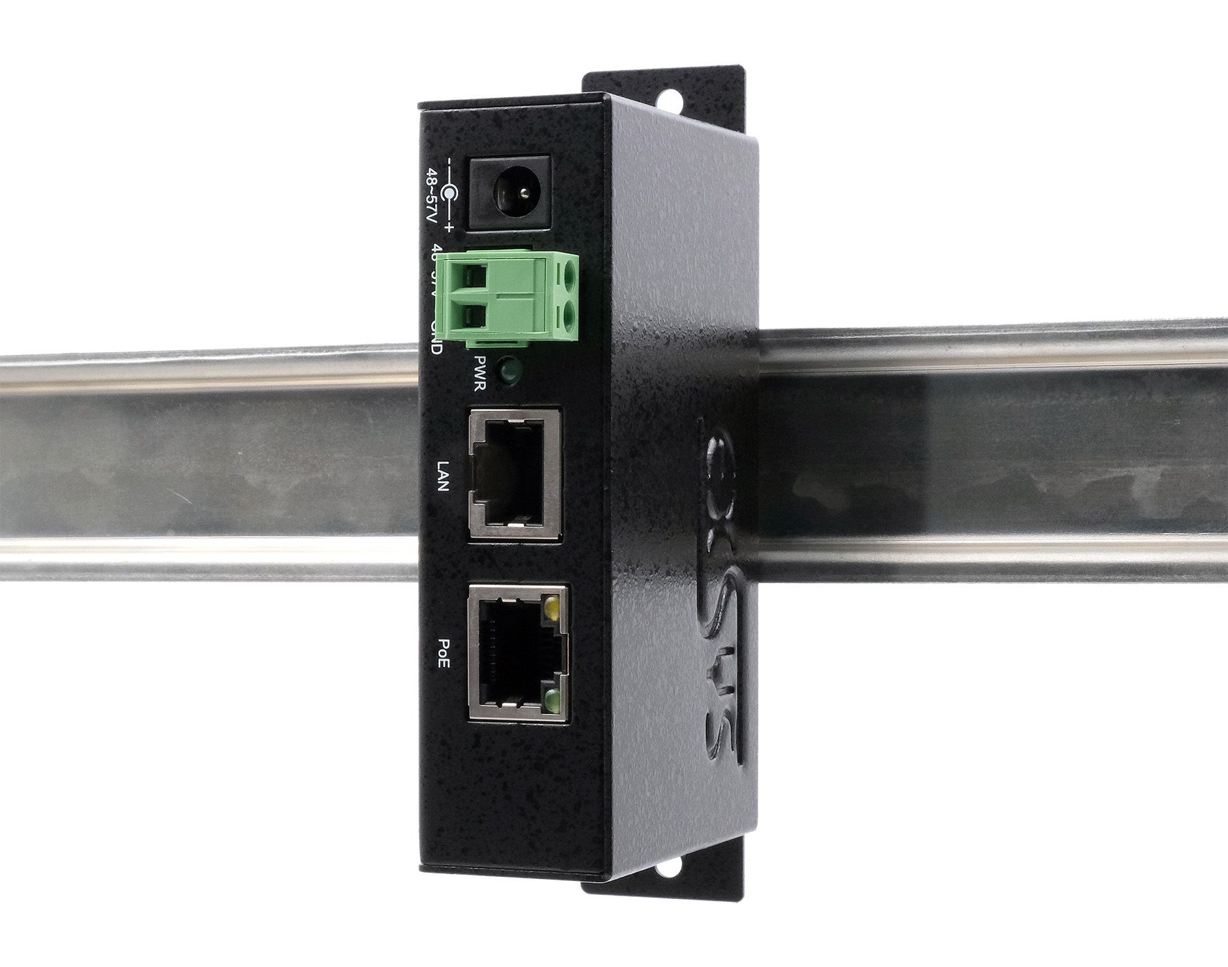 Mit dem Gigabit Ethernet PoE Injector EX-6008POE im robusten Metallgehäuse können PoE-Endgeräte wie IP-Telefone, IP-Kameras, WLAN Access Points etc. über das Netzwerkkabel mit Strom versorgt werden. Er unterstützt die PoE-Standards IEEE 802.3af (PoE), IEEE 802.3at (PoE+) und IEEE 802.3bt (PoE++) und ermöglicht eine maximale Leistungsabgabe am PoE-Port von bis zu 60 W. Die Stromversorgung erfolgt über das mitgelieferte Netzteil oder den +48~57V Terminal Block. Der EX-6008POE garantiert eine sichere Datenübertragung und eine exzellente Performance von bis zu 1000 Mbit/s. Das kompakte und robuste Metallgehäuse kann direkt an der Wand oder mit dem mitgelieferten DIN-Rail-Kit auf einer 35mm Hutschiene montiert werden.
