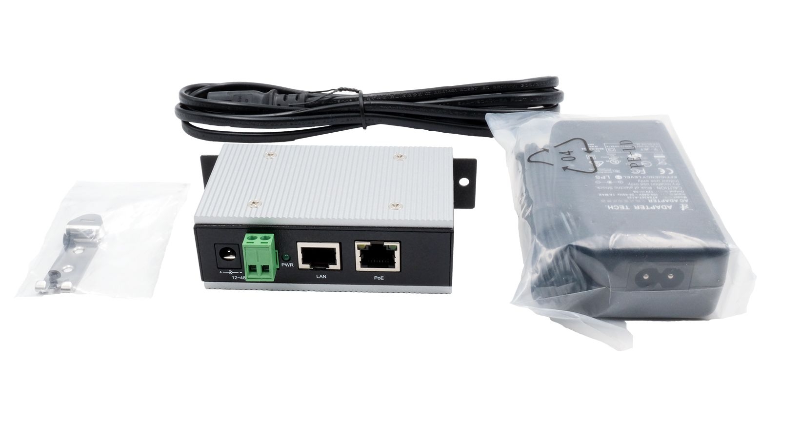 PoE Gigabit Injektor, Metall Gehäuse (+12V bis +48V DC Eingang) -40°C bis +85°C
