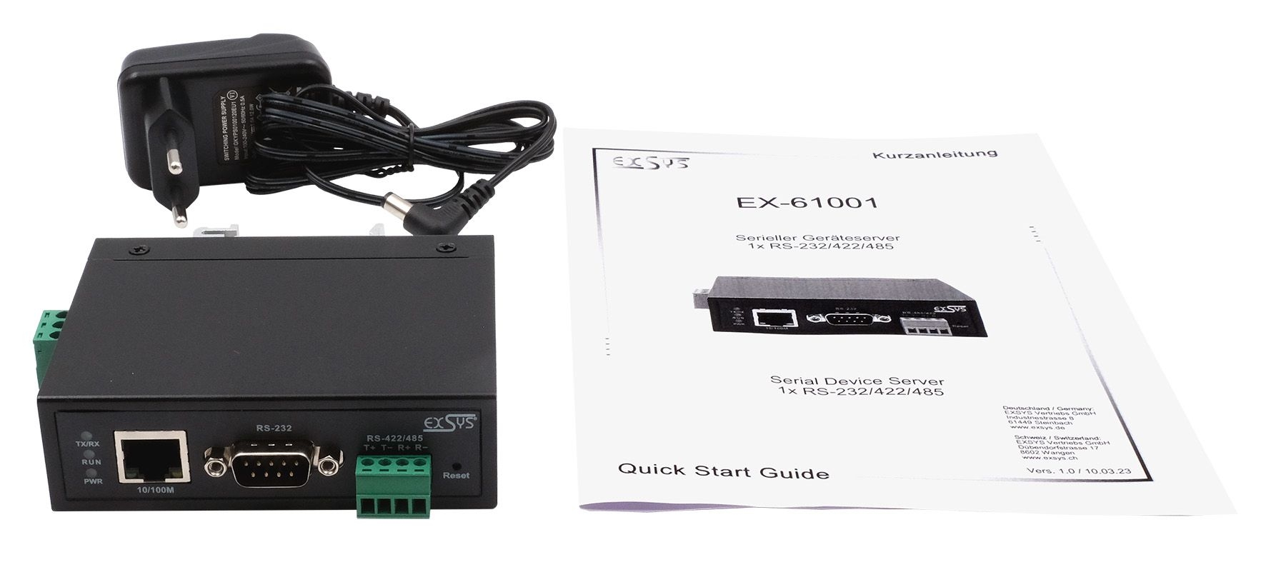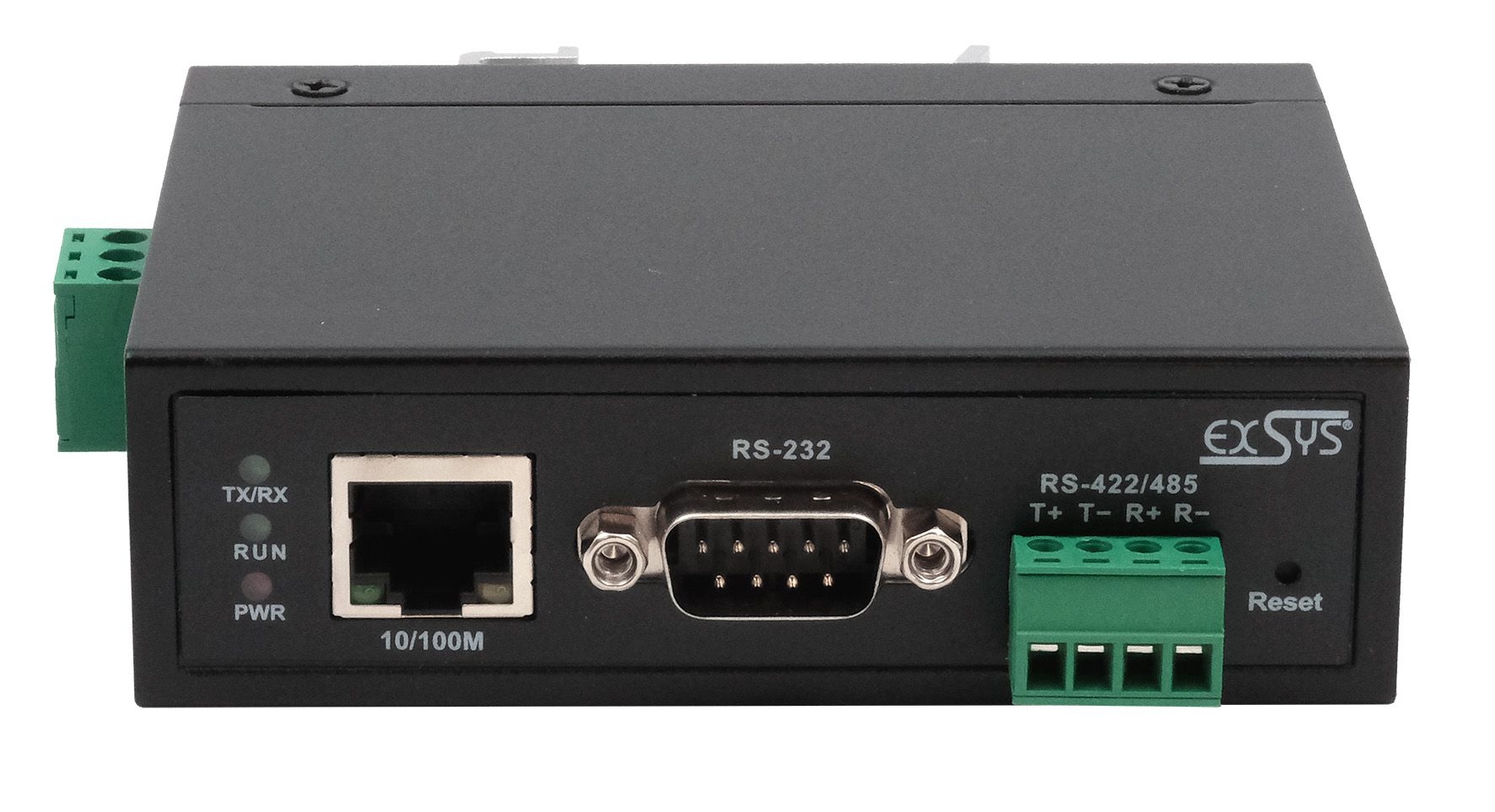 Der EX-61001 ist ein serieller Multiprotokoll-Geräteserver zum einbinden von seriellen RS-232/422/485 Geräten (z.B. Zahlungsterminals, Barcodeleser, Sensoren, Messgeräte, Wiegesysteme, CNC-Steuerungen etc.) in ein IP-basiertes Ethernet-Netzwerk und ermöglicht direkten Zugriff auf serielle Geräte von jedem Punkt des Netzwerks. Die Konfiguration erfolgt auf komfortable Weise über den Webbrowser und es wird eine Vielzahl an Betriebsarten wie TCP Server, TCP Client, UPD, VCOM, Remote-Pair-Master-Slave, Modbus Server, Modbus Client unterstützt.