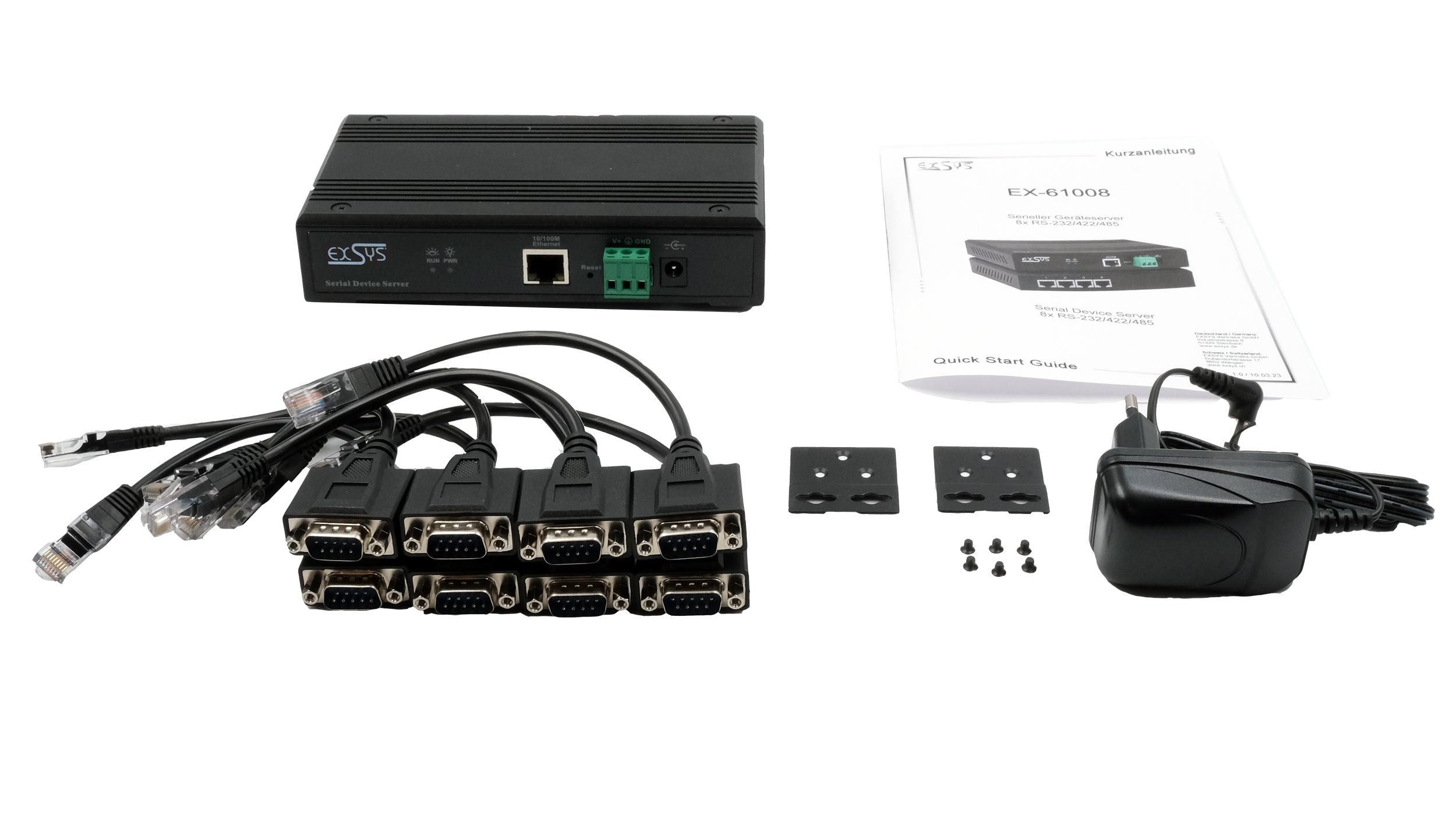 EX-61008, 8x Kabeladapter RJ45-DB9, Netzteil, Wandmontagebügel, Kurzanleitung