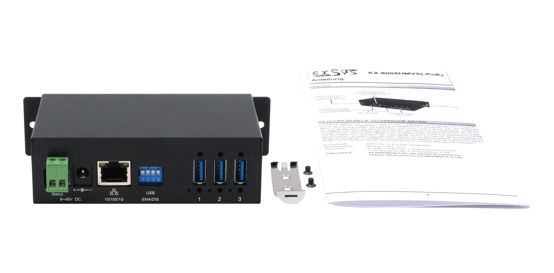 EX-6005HMVS, Netzteil 12V/3A, DIN-Rail Kit, Kurzanleitung