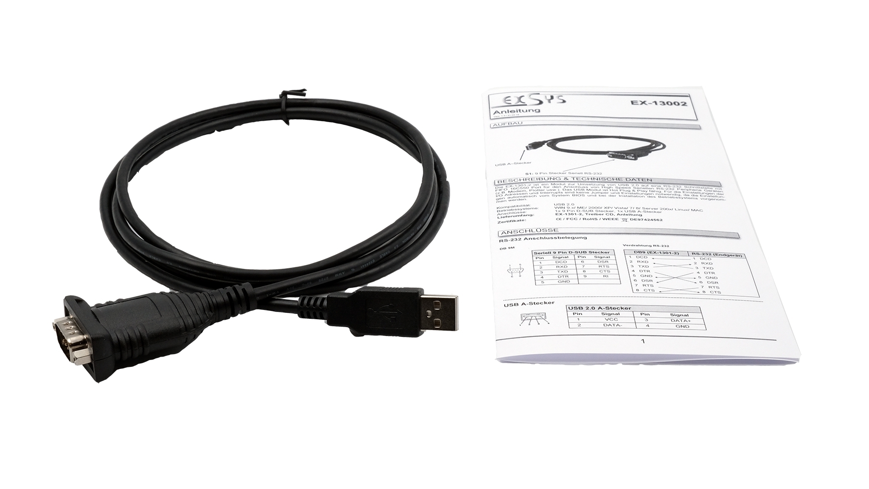 Das USB zu RS-232 Kabel mit A-Stecker stellt einen seriellen RS-232 High Performance UART 16C550 Ausgang zur Verfügung. Er wurde entwickelt, um einen weiteren seriellen Ausgang für PC, Workstation oder Server über den USB 1.1, 2.0 oder 3.2 Bus zu erweitern. Durch die einfache Installation muss der Rechner nicht geöffnet werden und der EX-13002 kann bei laufendem Betrieb installiert werden.